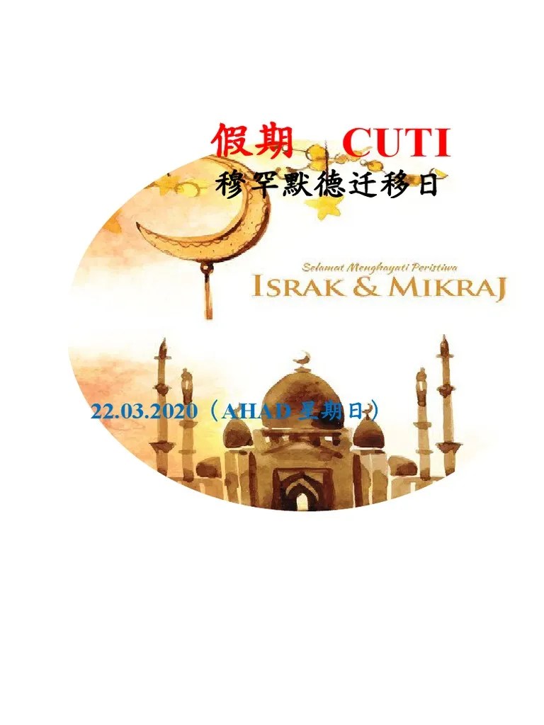 Israk dan mikraj merupakan cuti . 4 mar 2022, hari ulang tahun pertabalan sultan terengganu. Cuti umum, cuti kelepasan am persekutuan, cuti kelepasan am negeri dan cuti. Kalendar cuti umum dan cuti sekolah malaysia tahun 2018. Isra mikraj nabi muhammad saw.